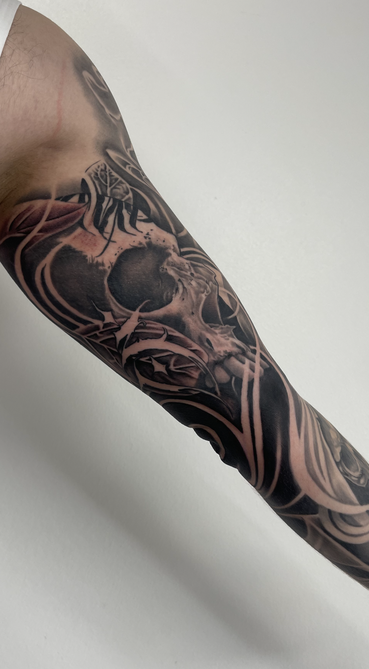 Mit navn er Alexander Tambour. Min rejse som tatovør startede i 2017 på Frederiksberg hvor jeg kom i lære i en tatovørshop. Min interesse for at være kreativ startede fra jeg var helt ung. Hvis jeg havde en blyant i hånden fandt jeg altid noget at tegne på. Jeg er et meget visuelt og detaljeorienteret menneske, hvilket i kombination med min naturlige interesse for at være kreativ, gik op i en højere enhed da muligheden for at blive tatovør bød sig.